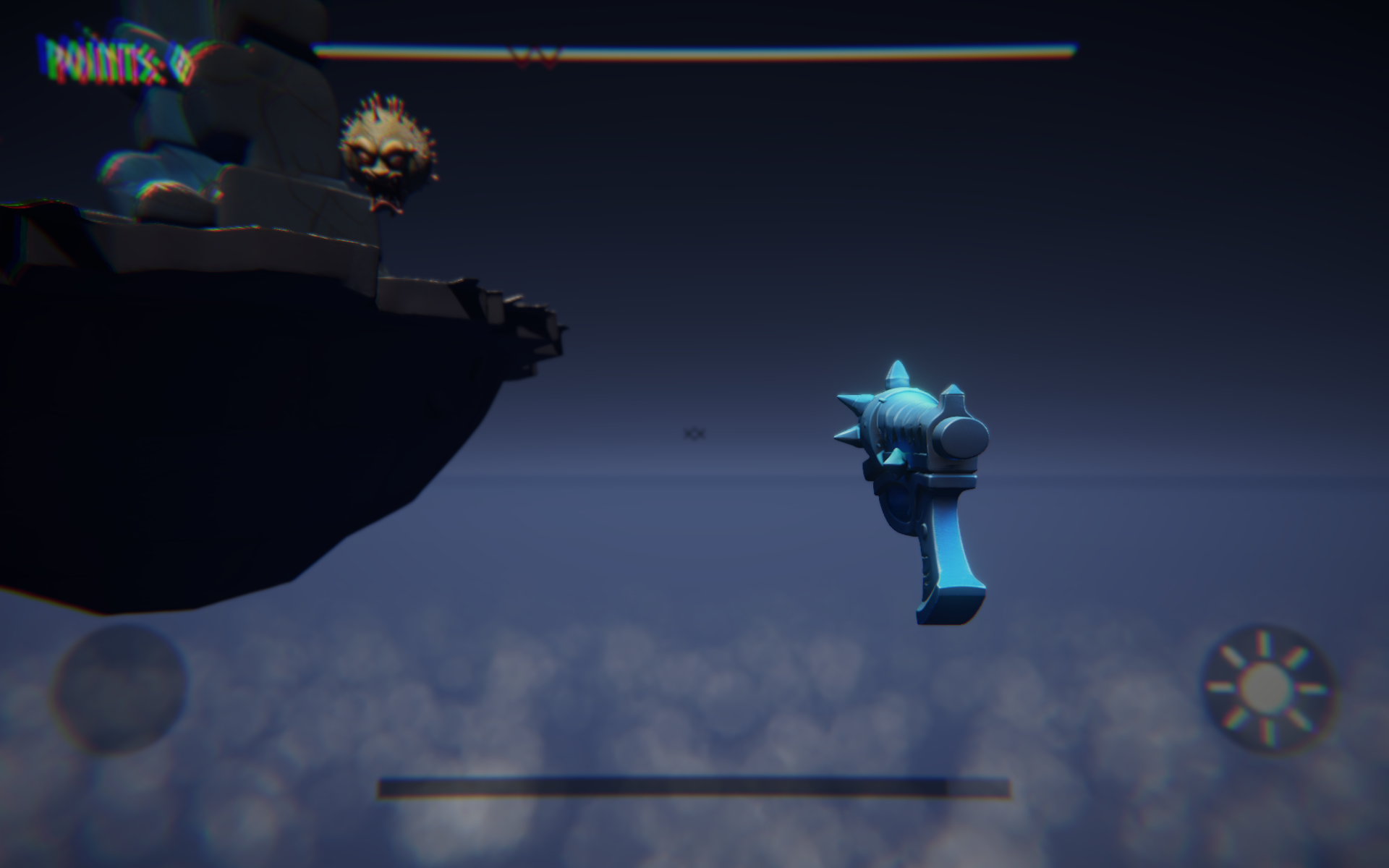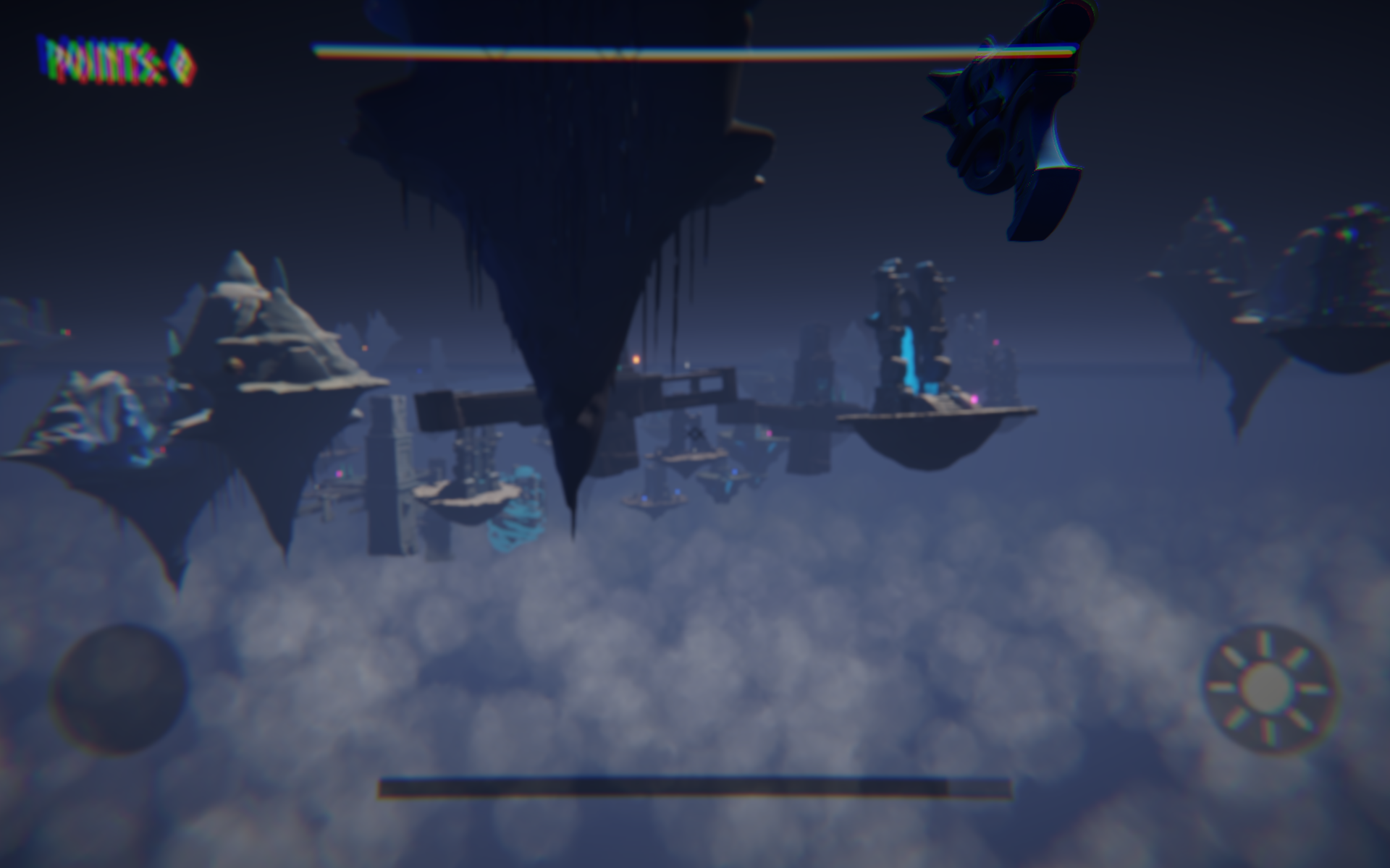 As development progressed, the gameplay space expanded into more dynamic environments, like the floating island landscape. These suspended ruins reinforce the “ruin” aspect. Designing levels as floating landmasses allowed me to lean into the fast grappling mechanic.