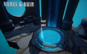 Visually, this idea guided many of my decisions. The opening scene, as shown in the title screen, centers on a glowing rune platform surrounded by towering stone structures. This space acts as a thematic anchor: it introduces runes not just as symbols, but as sources of energy and progression. The strong blue glow contrasts against dark stone and shadow, helping establish a tone that’s mystical, slightly ominous, and inviting. I focused on lighting and color to communicate mood, using emissive elements to draw attention and suggest interactivity without overwhelming the player.